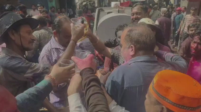 अलीगढ़: पुलिस की मौजूदगी में होली खेलते युवकों ने शराब का किया खुलेआम सेवन