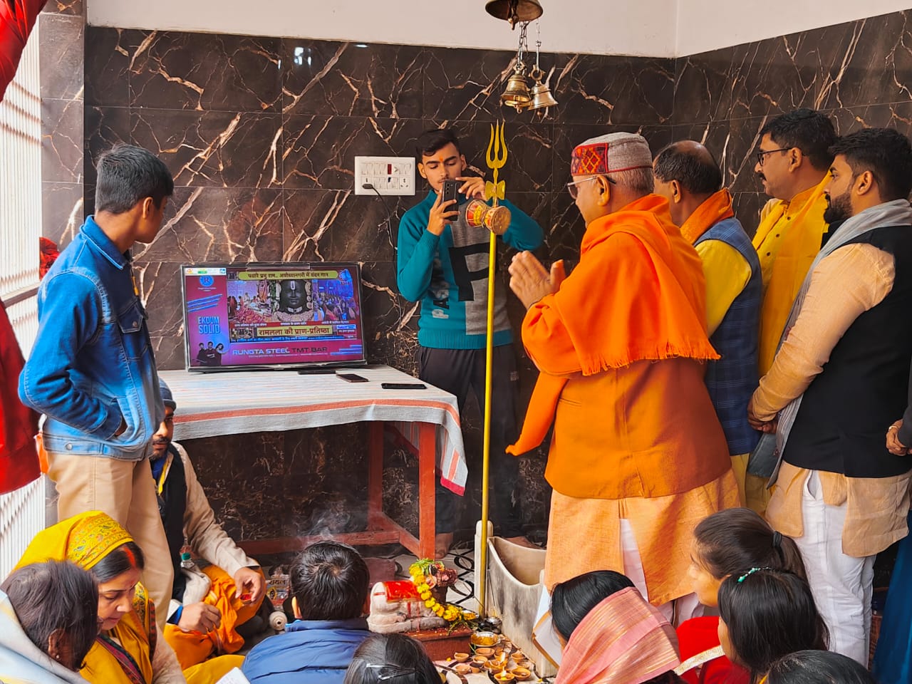 प्राण प्रतिष्ठा के अवसर पर पूर्व मंत्री विजय मिश्र संग अभिनव सिन्हा ने किया भजन पूजन