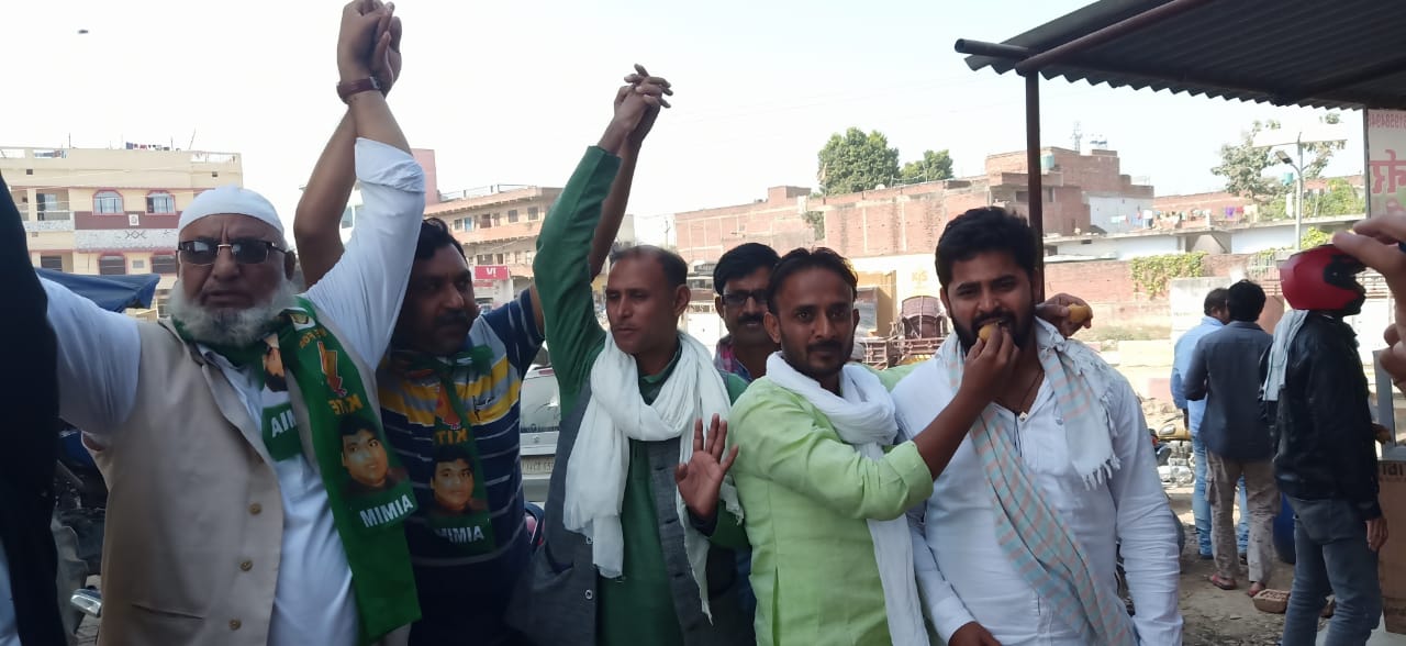 उत्तर प्रदेश के गाजीपुर में ऑल इंडिया मजलिस इत्तेहादुल मुस्लिमीन पार्टी के कार्यकर्ताओं ने मनाया जश्न बिहार चुनाव में धमाकेदार ऐतिहासिक एम आई एम पार्टी ने 5 सीट निकाला है जिससे लोगों में खुशी की लहर है एम आई एम पार्टी के कार्यकर्ताओं ने गाजीपुर के कई क्षेत्रों में अलग-अलग जगहों पर लोगों को मिठाई खिलाकर जीत का इजहार किया एम आई एम पार्टी के अध्यक्ष असदुद्दीन ओवैसी साहब ने यह संकेत दे दिया के अब वह बंगाल और उत्तर प्रदेश का चुनाव लड़ेंगे जिसकी वजह से उत्तर प्रदेश में अन्य दलों में मातम सा छाया हुआ है ऑल इंडिया मजलिस इत्तेहादुल मुस्लिमीन पार्टी के बढ़ते कद को देखकर लोगों को परेशानी हो रही है एम आई एम पार्टी बनी उत्तर प्रदेश में अन्य पार्टियों के लिए सर दर्द अब देखना यह है कि ऑल इंडिया मजलिस इत्तेहादुल मुस्लिमीन पार्टी चुनावी मैदान में कैसे लड़ेगी वैसे उत्तर प्रदेश में कई चुनाव लड़ भी चुकी है और लगभग सभी जिलों में ऑल इंडिया मजलिस इत्तेहादुल मुस्लिमीन पार्टी के कार्यकर्ता भी मौजूद हैं और वह बहुत खुश हैं अपनी पार्टी की जीत की वजह से और इनकी हिम्मत और हौसला इतना बुलंद हो गया है कि अब वह किसी भी पार्टी को मुकाबला देने के लिए मैदान में आने के लिए तैयार हैं