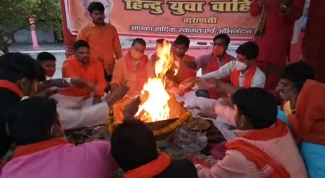 वाराणसी । हिंदू युवा वाहिनी वाराणसी महानगर की तरफ हिन्दू नव वर्ष (विक्रम संवत2078) के पावन अवसर पर गोरक्षनाथ मंदिर(कार्यलय) पर सामाजिक दूरी और मास्क के प्रयोग के साथ ध्वजारोहण और यज्ञ पूजन कर हर्षोल्लास से मनाया गया ।