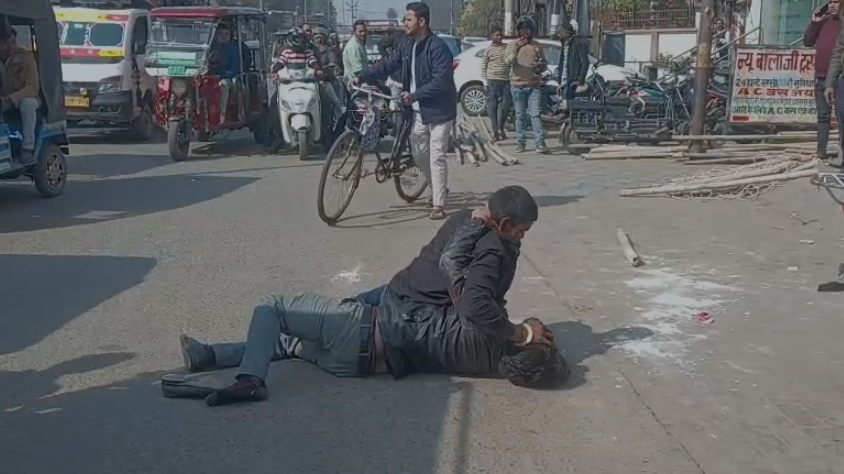 बीच सड़क हुई मारपीट से अफरा-तफरी: