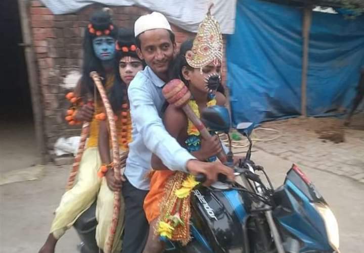 आजमगढ़। जिले का नाम हर क्षेत्र में रोशन करने वाले मौजूद हैं। उपलब्धियों की गिनती होने पर अतरौलिया के शादाब का नाम प्रमुख लोगों में लिया जाएगा। जिसने रामलीला कमेटी वालों की इज्जत बचाने के लिए नमाज की भी परवाह नहीं की। कमेटी वालों के एक आग्रह पर राम, लक्ष्मण, हनुमान आदि का किरदार निभा रहे कलाकारों को बाइक पर बैठाकर पहुंचाया। इसके बाद नमाज पढ़ने गया। शादाब के इस कारनामे की जोरों पर चर्चा है।