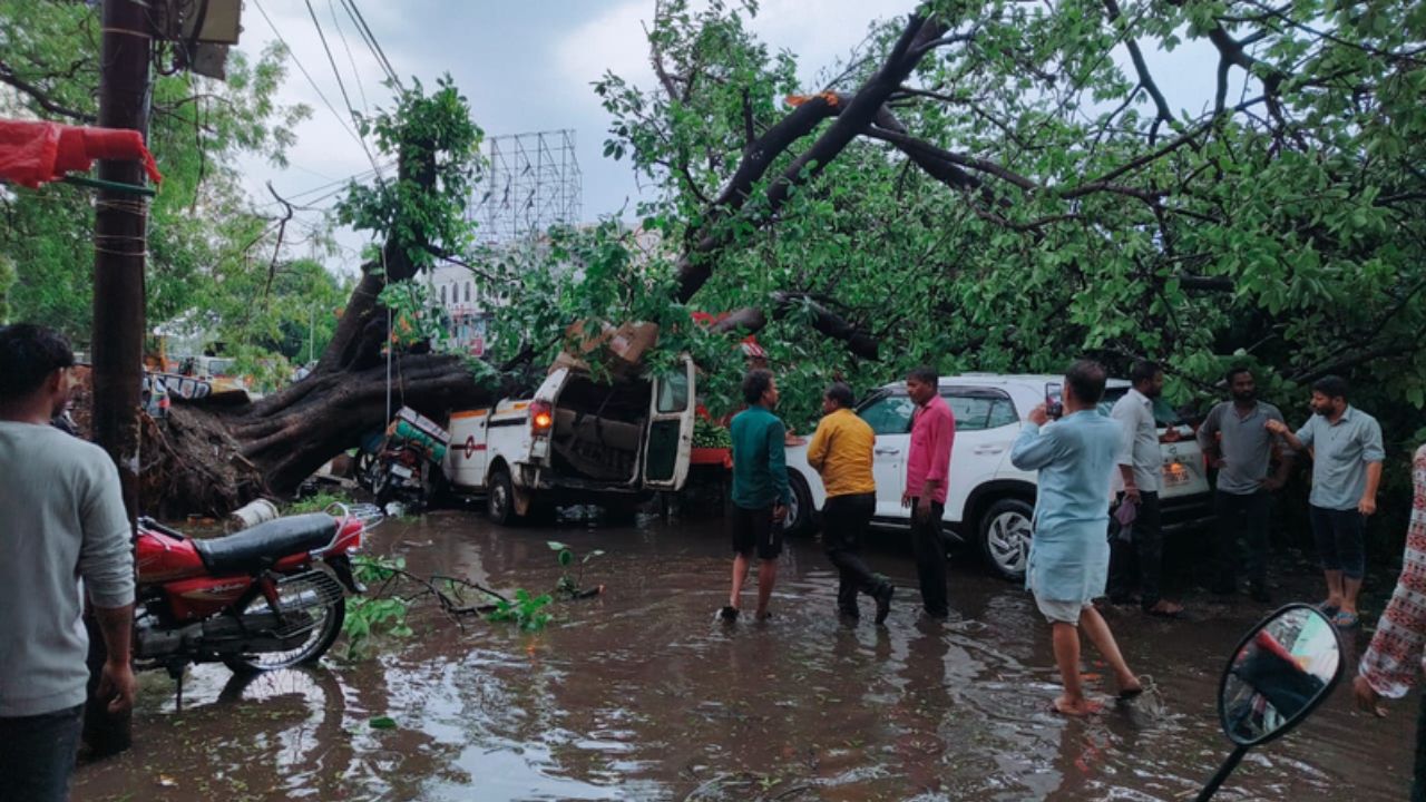 कानपुर में खराब मौसम का कहर; बारिश के साथ गिरे ओले, ऑटो पर पेड़ गिरने से दो की मौत