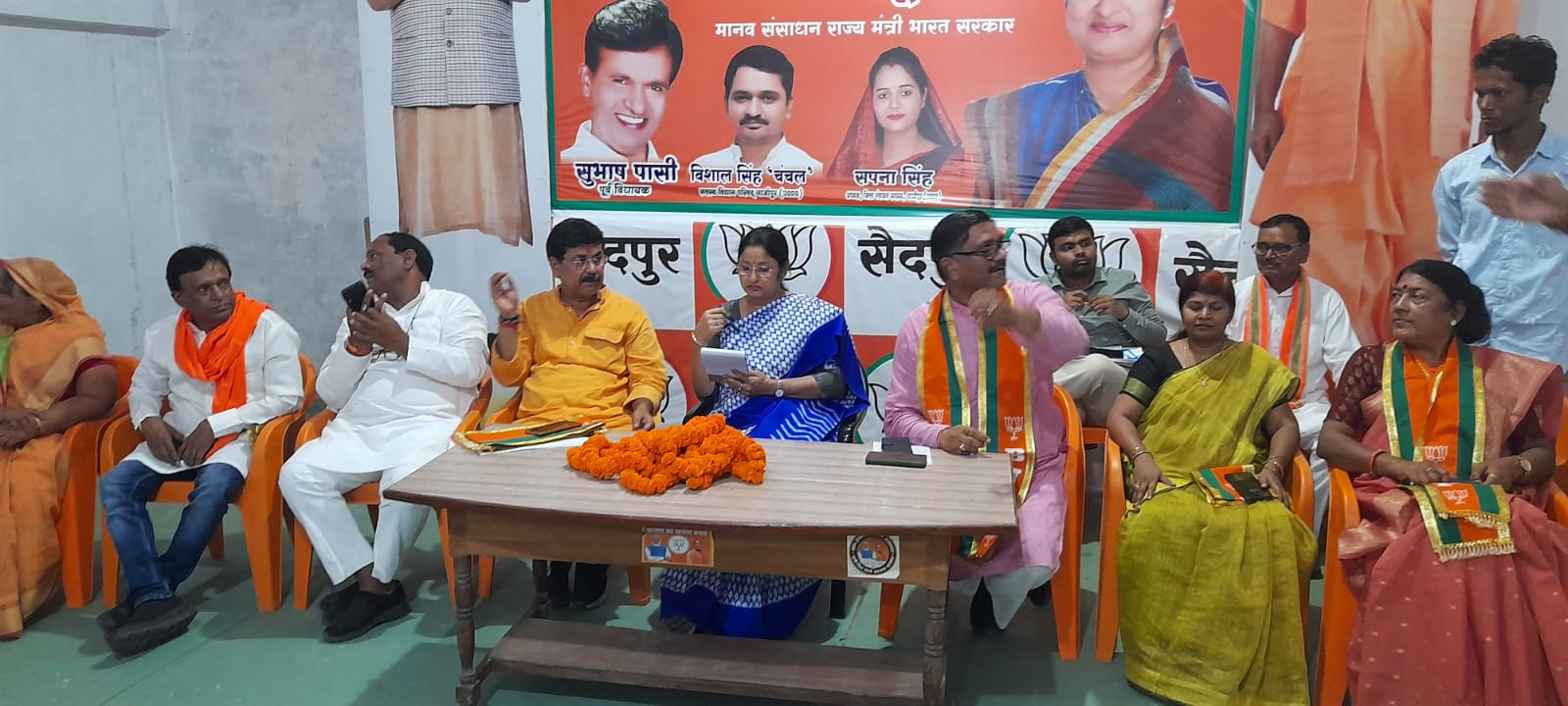 गाजीपुर। केंद्रीय शिक्षा राज्यमंत्री अन्नपूर्णा देवी मंगलवार को एक दिवसीय दौरे पर सैदपुर विधानसभा के विभिन्न कार्यक्रमों में शामिल होने के साथ भाजपा की संगठनात्मक बैठक में हिस्सा लिया। पूर्व विधायक सुभाष पासी के आवास पर जिलाध्यक्ष भानुप्रताप सिंह के अध्यक्षता में संगठनात्मक बैठक में उन्होंने विधानसभा संयोजकों, प्रभारियों, मोर्चा अध्यक्षों, सोशल मीडिया एवं आई टी संयोजकों संग बैठक की।