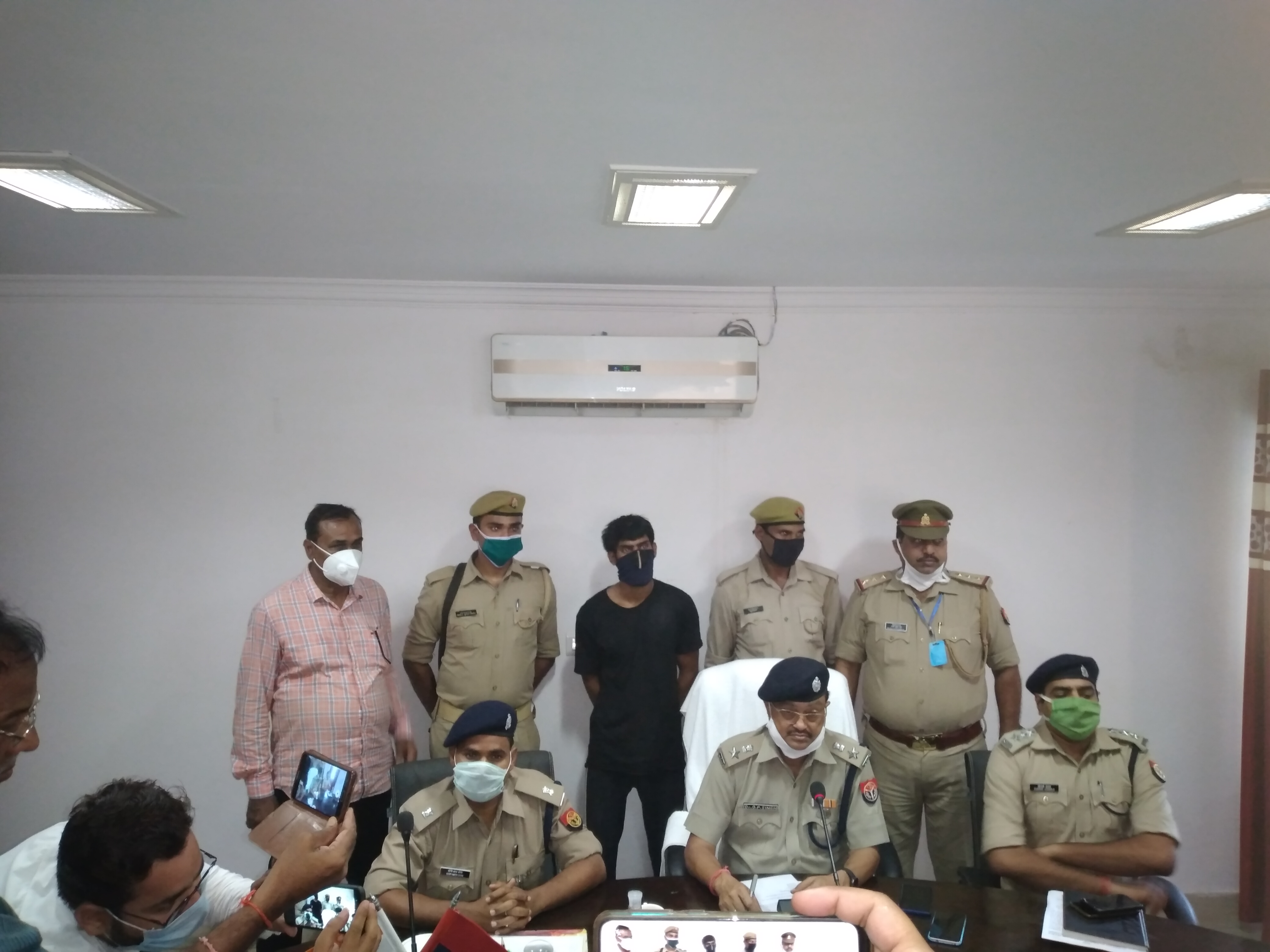 गाजीपुर। जमानियां थाना क्षेत्र के कसेरा पोखरा पर देशी शराब की दुकान के सेल्समैन कन्हैया पुत्र अनिल सिंह बमौरा समस्तीपुर बिहार के हत्याकांड का खुलासा पुलिस ने रविवार को कर दिया है। पत्रकार वार्ता में पुलिस अधीक्षक डा. ओमप्रकाश सिंह ने बताया कि दो जुलाई को देशी शराब के सेल्समैन कन्हैया की हत्या शराब न देने के कारण दो अपराधियों कर दी थी। हत्या में शामिल रामप्रवेश को गिरफ्तार करके जेल भेज दिया गया था वहीं दूसरा मुख्य आरोपी अमित चंद उर्फ रोशन पत्र सुरेश बिंद हत्या करने के बाद महाराष्ट्र भाग गया था। जिसपर पुलिस ने 25 हजार का इनाम घोषित किया था। जमानियां पुलिस द्वारा शाहपुर थाणे मुंबई से रोशन को गिरफ्तार कर लिया। गिरफ्तार करने वाली टीम में प्रभारी निरीक्षक राजीव सिंह, एसआई सेनापति सिंह आदि लोग हैं।