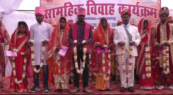 डीएवी इण्टर कालेज आजमगढ़ में शामिल हुए 29 जोड़ों के लिए कुल 05 मण्डप बनाये गये थे। इस अवसर पर स्टेज पर 29 जोड़ों का जयमाल कार्यक्रम कराया गया, जिसमें वर-वधु एक दूसरे के गले में जयमाल डाल कर वैवाहिक कार्यक्रम किया गया। इसी के साथ ही जिलाधिकारी, बीजेपी जिलाध्यक्ष आजमगढ़ ध्रुव सिह, बीजेपी जिलाध्यक्ष लालगंज ऋषिकान्त राय, सहजानन्द राय व जनप्रतिनिधियो, उप निदेशक समाजकल्याण द्वारा सभी जोड़ों को सुखमय जीवन के लिए आशीर्वाद तथा बधाई दी गयी। जिलाधिकारी ने बताया कि मुख्यमंत्री सामूहिक विवाह योजना मुख्यमंत्री जी की महत्वाकांक्षी योजनाओं में से एक है। जिलाधिकारी द्वारा प्रति जोड़ों को “बधाई हो आपकों बिटियॉ हुई है“ नामक पुस्तिका वितरित की गयी। उन्होने कहा कि वैवाहिक कार्यक्रम में आयी हुई महिलाओं/लड़कियों को भी यह पुस्तक उपलब्ध करायी जाय। उन्होने कहा कि यह पुस्तक महिलाओं/लड़कियों के लिए लाभकारी है, इसे स्वंय पढ़े और उसकी जानकारी अपने परिवार एवं अपने आस-पास के लोगों को भी बतायें।