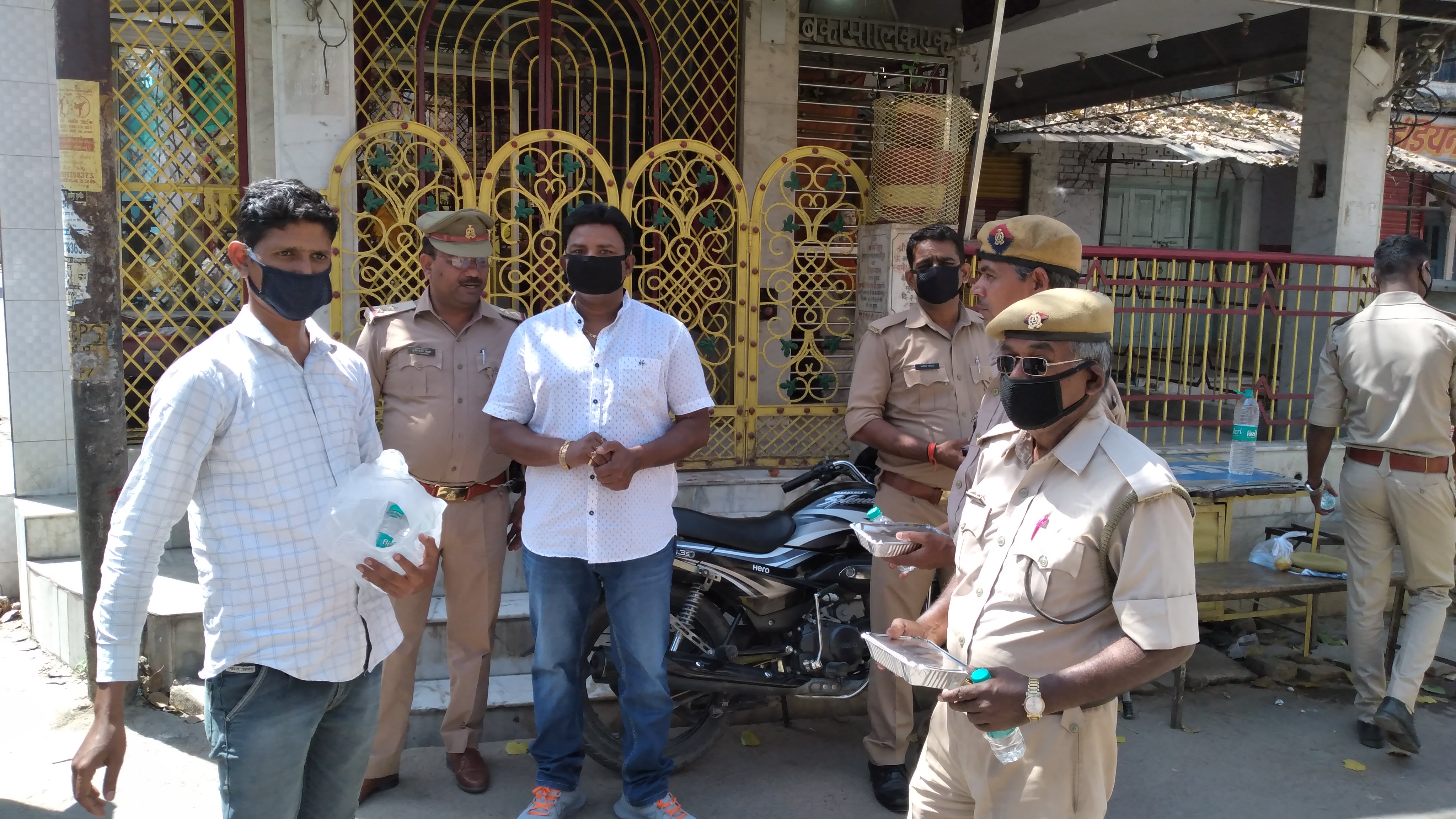 उत्तर प्रदेश के जनपद गाज़ीपुर में पुलिसकर्मियों को भोजन बांटने वाले समाजसेवी संजय सिंह। pic.twitter.com/eGXajzfDvV
