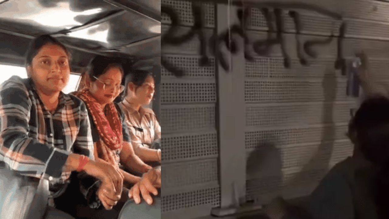 वीडियो में दो युवतियां स्प्रे पेंट से रेलिंग पर नारे लिखती नजर आती हैं। दोनों के गले में भगवा गमछा है। एक युवती अंग्रेजी में “This road is not allowed for Muslims” लिखती दिखाई देती है, जबकि दूसरी हिंदी में “यह सड़क मुसलमानों के लिए नहीं है” लिखती है। नारे लिखने के बाद दोनों जय श्रीराम के नारे भी लगाती हैं। वीडियो के अंत में लाल रंग की स्विफ्ट कार दिखाई देती है, जिस पर उत्तराखंड (Uttarakhand) की नंबर प्लेट लगी हुई है।