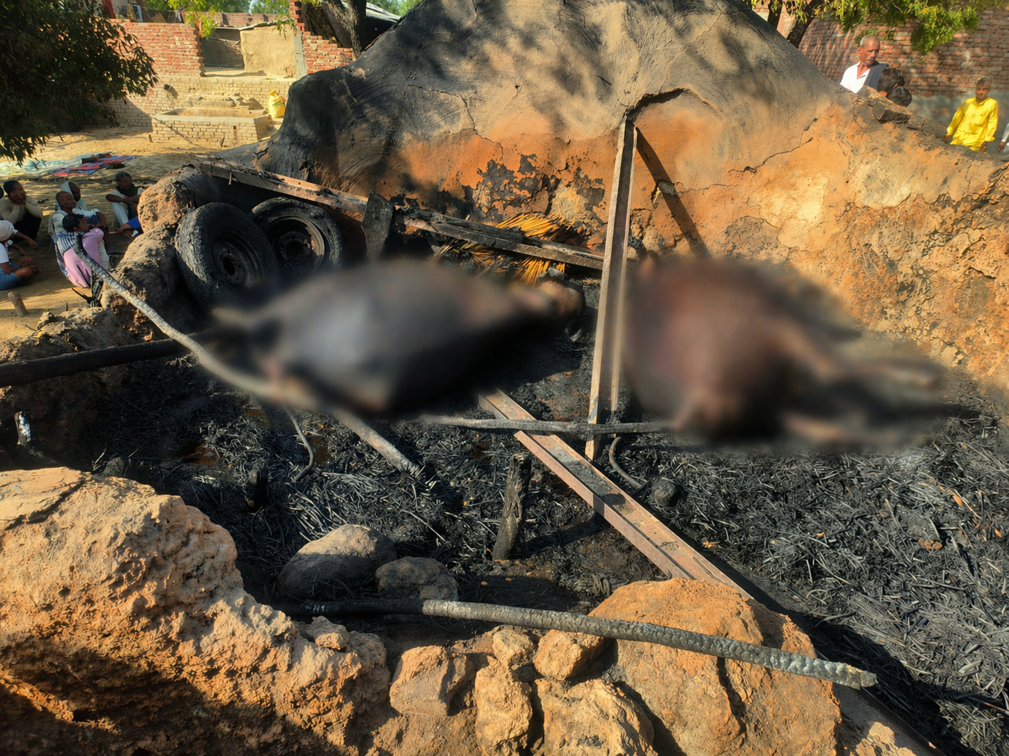 आग इतनी भयानक थी कि झोपड़ी में मौजूद दो पशु जिंदा जल गए। इस घटना ने परिवार को गहरा आघात पहुंचाया है। ग्रामीणों के अनुसार आग की लपटें इतनी तेज थीं कि पशुओं को बचाने का मौका नहीं मिल सका।