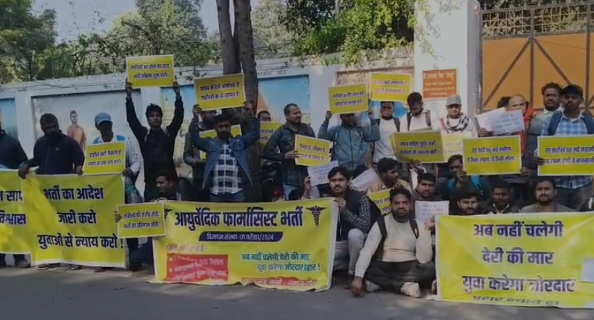 वर्ष 2024 की आयुर्वेदिक फार्मासिस्ट भर्ती में हो रही देरी को लेकर बड़ी संख्या में अभ्यर्थियों ने लखनऊ (Lucknow) में मंत्री डॉ. दया शंकर मिश्र ‘दयालु’ के आवास का घेराव किया। प्रदर्शन के दौरान अभ्यर्थियों ने नारेबाजी करते हुए भर्ती प्रक्रिया को शीघ्र पूरा करने की मांग उठाई। उनका कहना है कि लंबे समय से लंबित यह प्रक्रिया युवाओं के भविष्य को प्रभावित कर रही है और सरकार को इस दिशा में ठोस पहल करनी चाहिए।