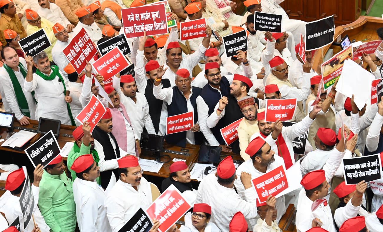 सोमवार को सुबह 11 बजे विधानमंडल के समवेत सदन की कार्यवाही राज्यपाल के अभिभाषण से शुरू हुई. मगर अभिभाषण शुरू होने से पहले ही समाजवादी पार्टी (सपा) के विधायक बैनर और पोस्टर लेकर सदन के बीचोंबीच आ गए और नारेबाजी करने लगे. सपा सदस्यों ने ‘गवर्नर गो बैक’ के नारे लगाए.