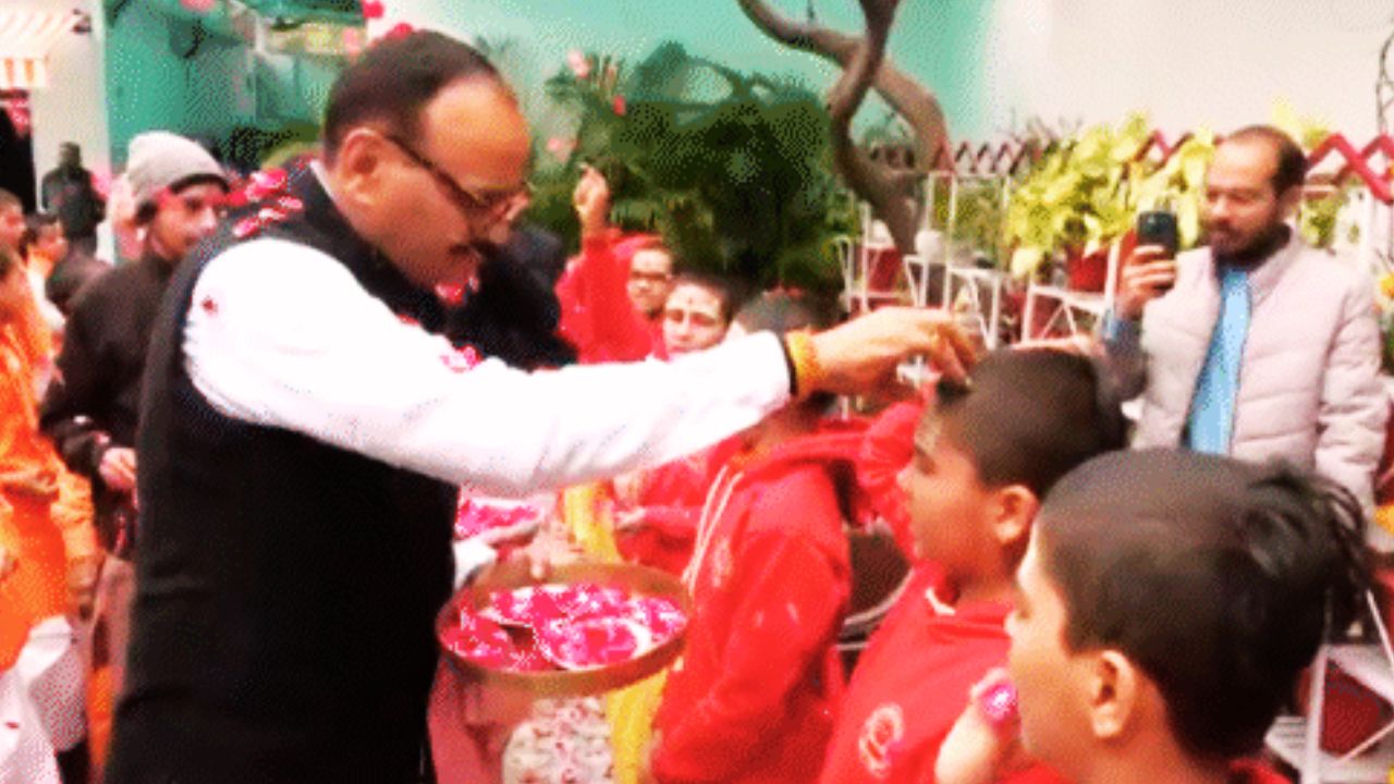 उत्तर प्रदेश (Uttar Pradesh) में शंकराचार्य विवाद के बीच डिप्टी सीएम ब्रजेश पाठक (Brajesh Pathak) ने लखनऊ (Lucknow) स्थित अपने आवास पर 101 ब्राह्मण बटुकों को आमंत्रित कर उनका सम्मान किया। गुरुवार सुबह आयोजित इस कार्यक्रम में उन्होंने पत्नी नम्रता पाठक (Namrata Pathak) के साथ सभी बटुकों का तिलक लगाकर स्वागत किया, हाथ जोड़कर प्रणाम किया और पुष्प वर्षा की। इस दौरान वैदिक मंत्रोच्चार के बीच पूजा-अर्चना संपन्न हुई। कार्यक्रम के बाद ब्रजेश पाठक (Brajesh Pathak) ने एक्स (X) पर लिखा कि बटुकों का सम्मान उनका सौभाग्य है।